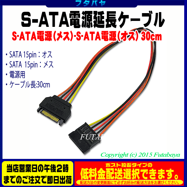 シリアルATA電源延長ケーブルアイネックス(AINEX) SA-047SA●SATA電源(オス)→SATA電源(メス)●ケーブル長:30cm