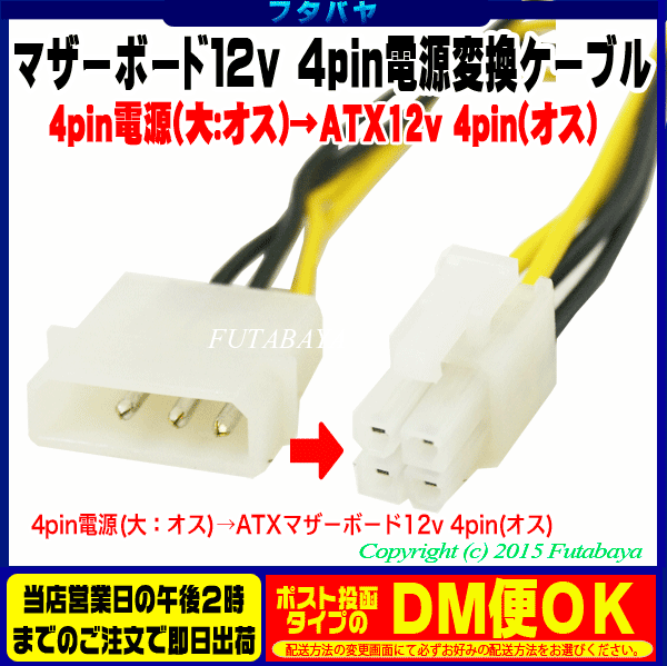 4pin電源(大)→ATXマザーボード12v 4pin変換ケーブルアイネックス(AINEX) PX-006A●4pin電源(大:オス)→ATX 4pin(オス)●ケーブル長:15cm●AWG18太目ケーブル使用