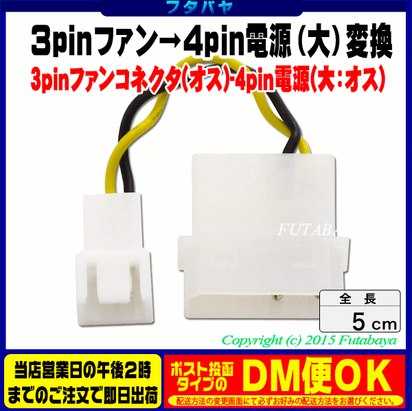 ファン3pin-4pin電源(大)変換ケーブルアイネックス(AINEX) CA-09A●ファン用3pin(オス)→4pin電源(大:オス)●ケーブル長:5cm