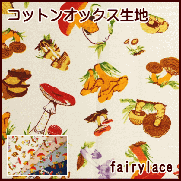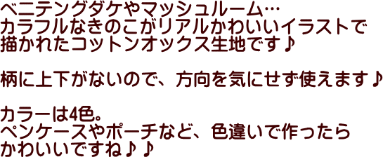 コットンオックス 生地 カラフルきのこ 綿100% 布 手芸 手作り ハンドメイド