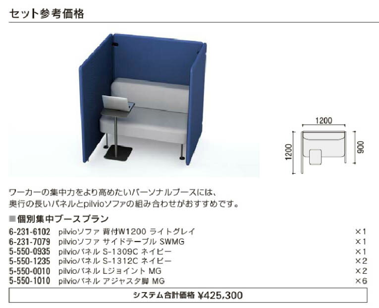 ピルヴィオ パネルシステム 個別集中ブースプラン 【 選べるパネルカラー 全6色 クロス張り 】 【 選べるパネル脚部 ・ ジョイントカラー 全2色 】 内田洋行
