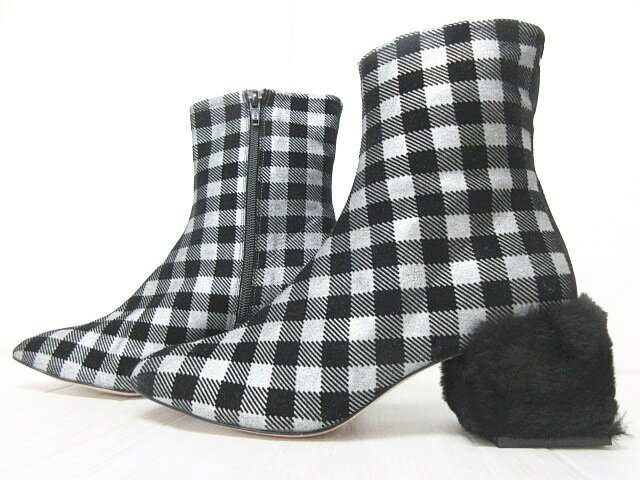 新品 ペリーコ PELLICO サニー SUNNY ショートブーツ チェック レザー フロッキープリント シルバー ブラック 黒 37 24 PY17-3114 0110 EMD2 レディース 【中古】【ベクトル 古着】 180110 ブランド古着ベクトルプレミアム店