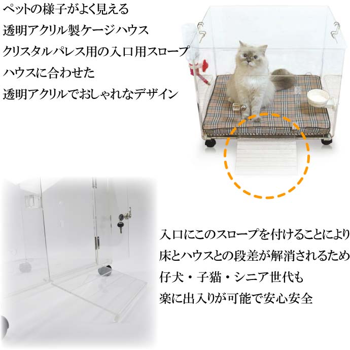商品名 FANTASY WORLDファンタジーワールド 透明アクリルハウスクリスタルパレス用スロープ CP60L 商品説明 ペットの様子がよく見える透明アクリル製ケージハウスクリスタルパレス用の入口用スロープ。