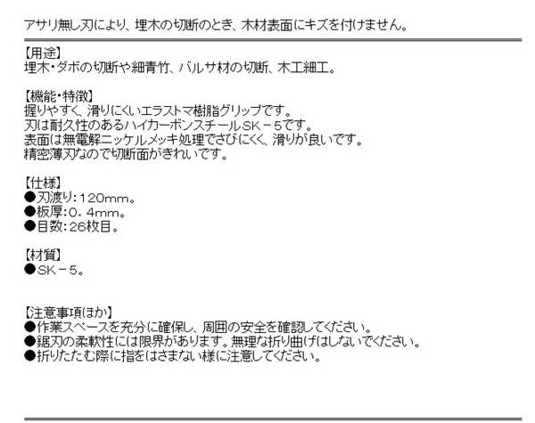 SK11・替刃式折込鋸120ダボ切細工・S120−DB